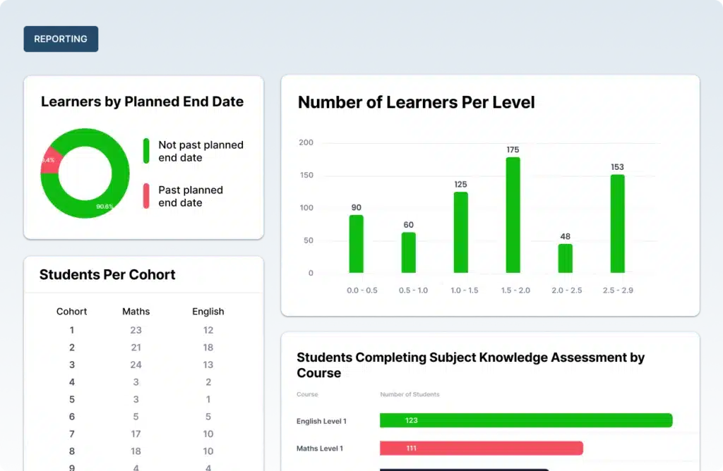 Easily manage cohorts, monitor performance, and generate ESFA and Ofsted-compliant reports through one integrated platform.